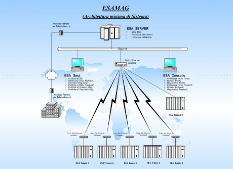 E' possibile pensare ad ESAMAG come al sistema complessivo per la gestione integrata di magazzino e, nella sua configurazione minima, fisicamente costituito da:
